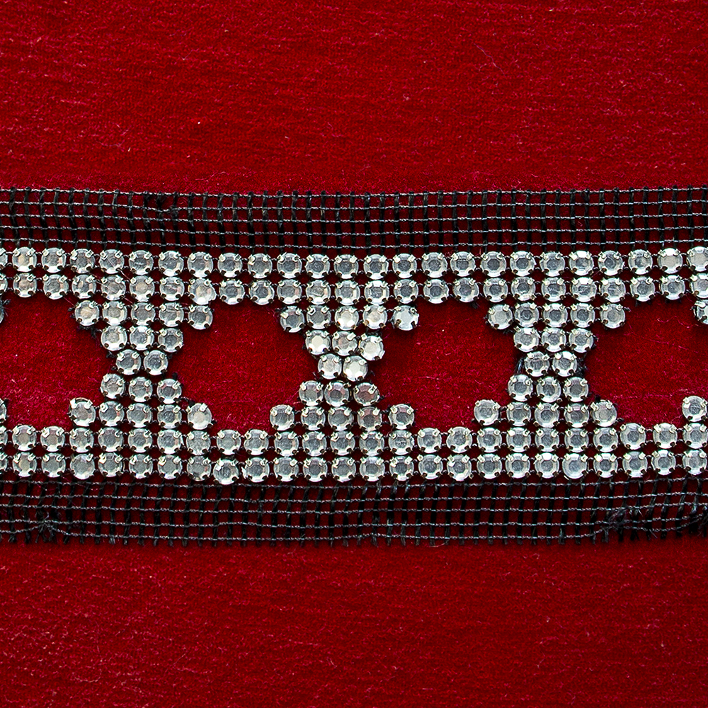 STRASS - TRIMMING BLACK NET WITH ACRYLIC STONES IN PATTERN